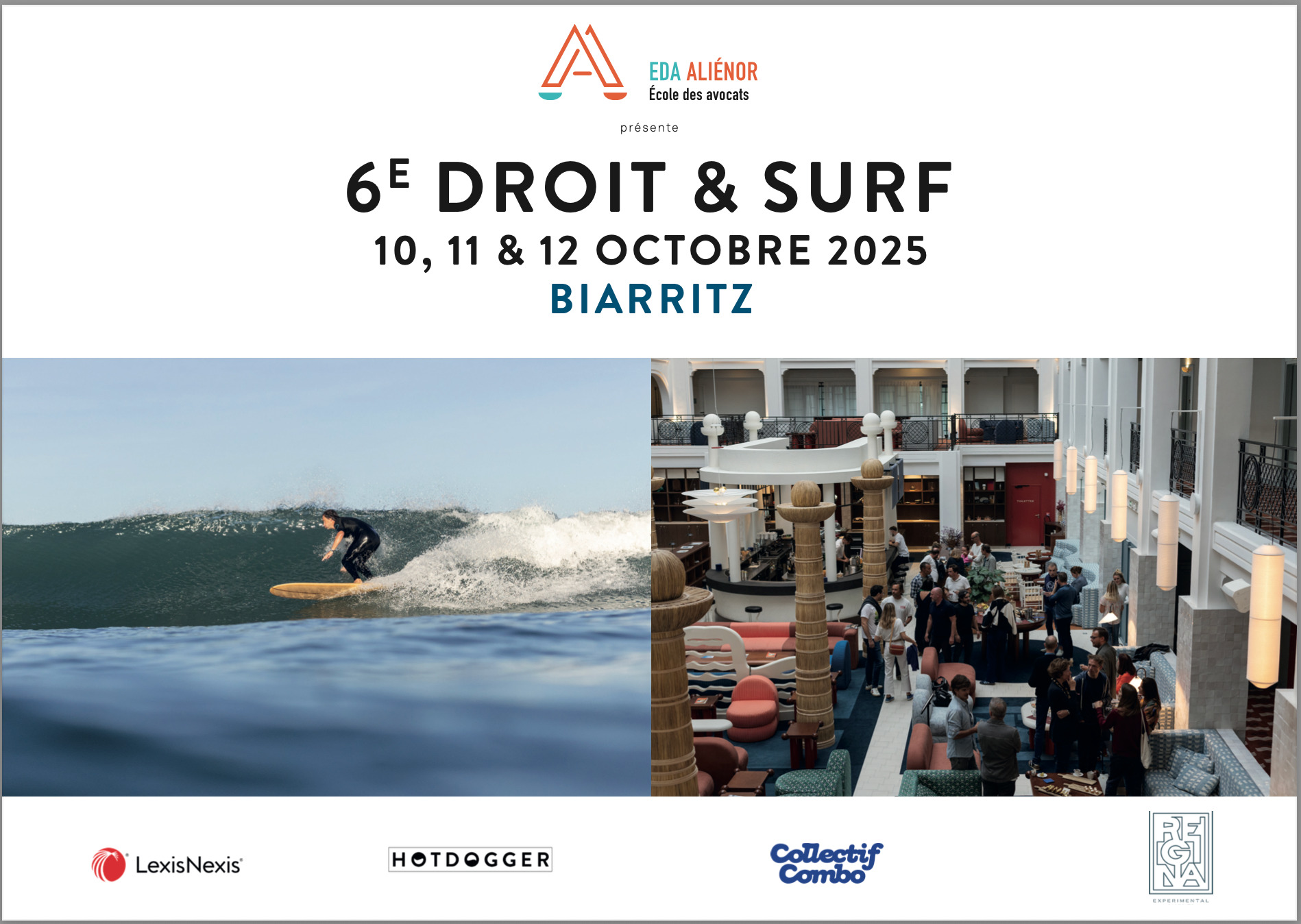Maître Gabrielle CHAPON a eu le plaisir d’intervenir à nouveau à l’occasion du Colloque « Droit et Surf » sur le thème « le recul du trait de côte : accompagner les acteurs économiques contre l’érosion de leur activité » pour la sixième édition organisée par HOTDOGGER, les 10, 11 et 12 octobre 2025 à BIARRITZ, Hôtel Le Garage.